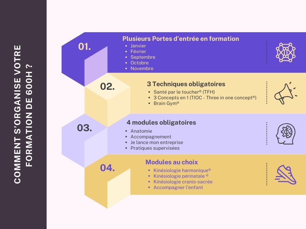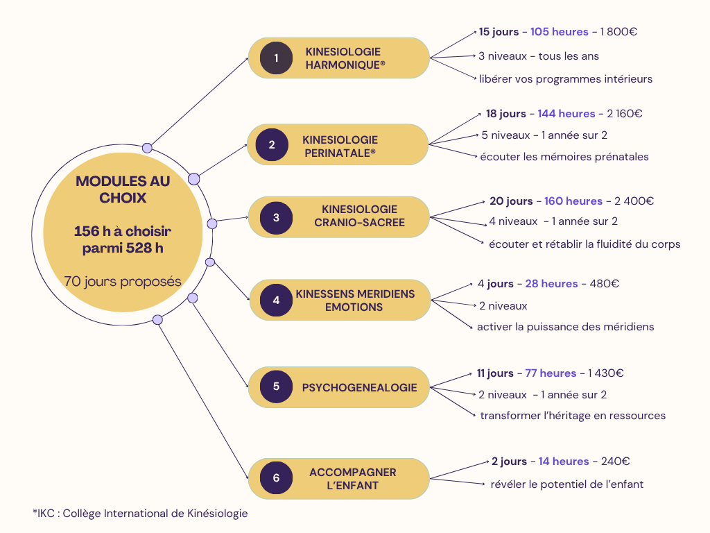 Le parcours Kinésiologue Professionnel est conçu pour offrir une montée en compétence progressive et solide.