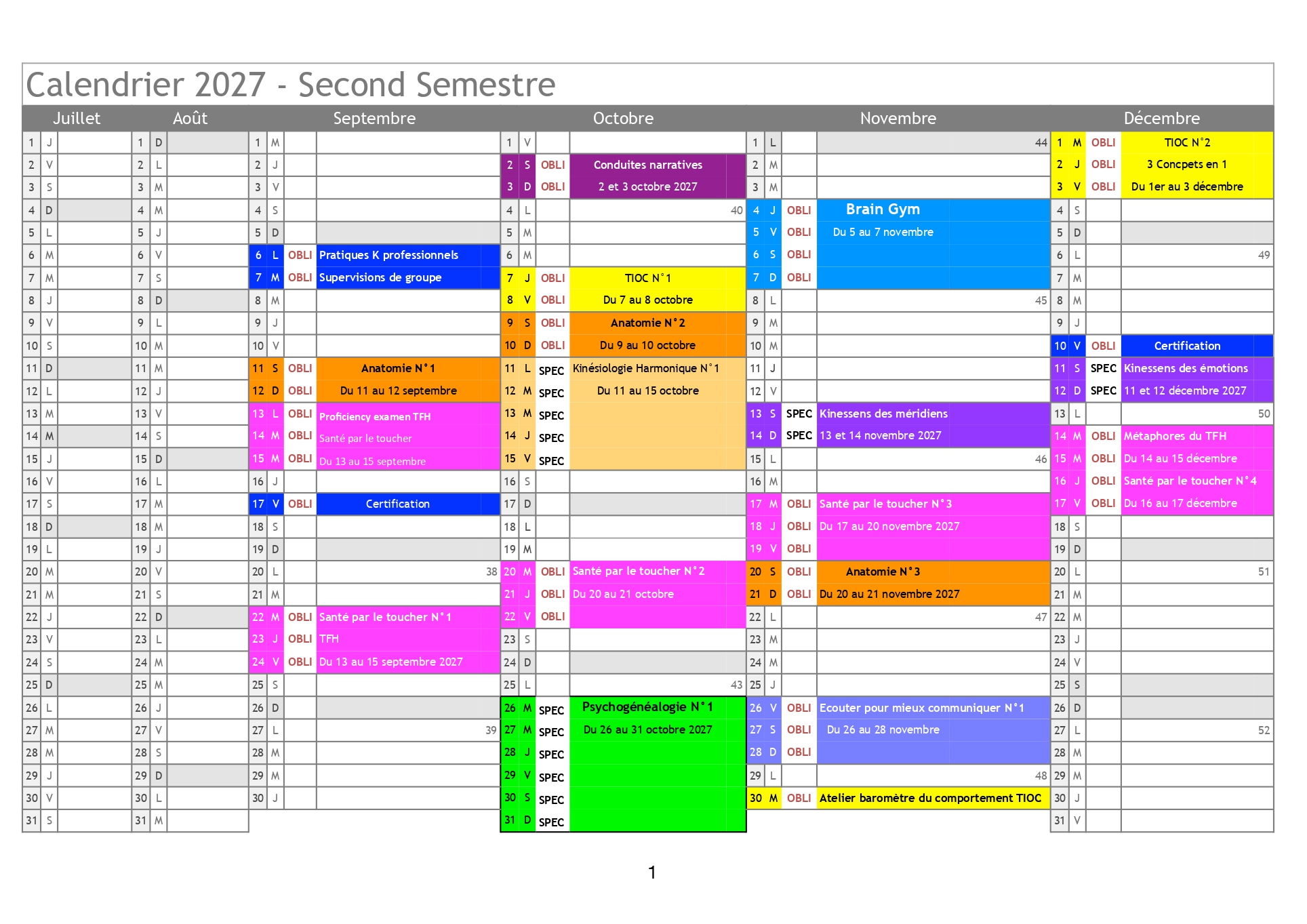 Planning des cours 2026/2027